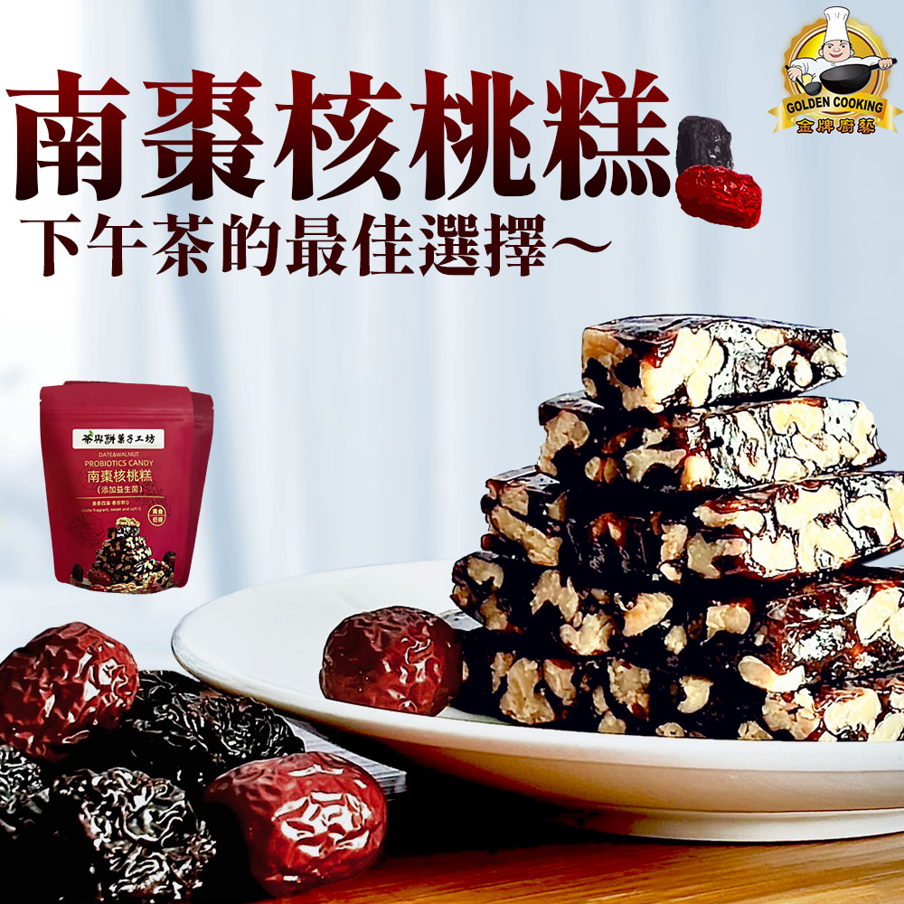 茶與餅百大伴手禮,雙益菌南棗核桃糕,低糖配方,健康美味。